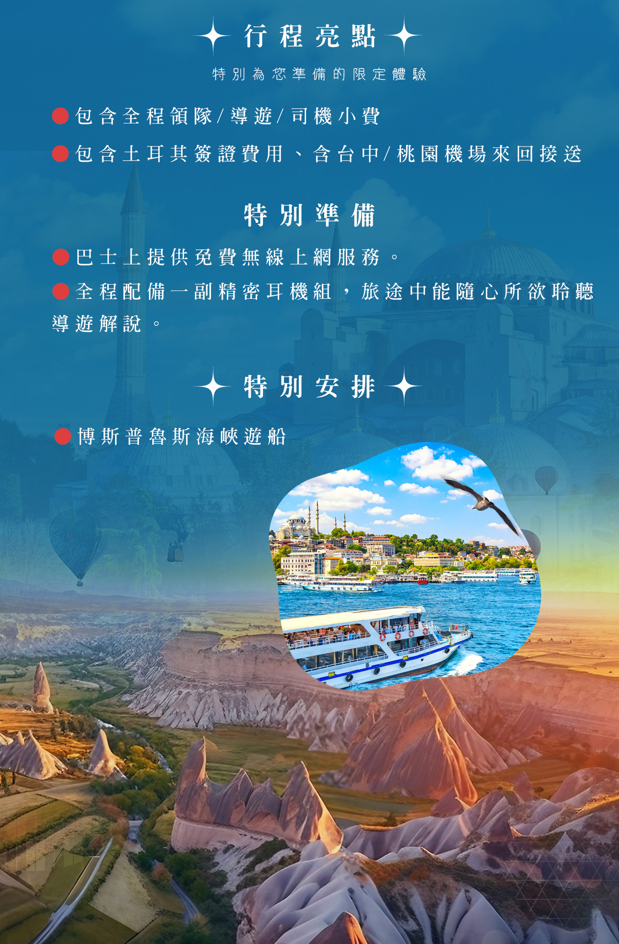 2.全程使用土耳其英文導遊搭配專業領隊隨團服務,為您講解土耳其的歷史人文風情。