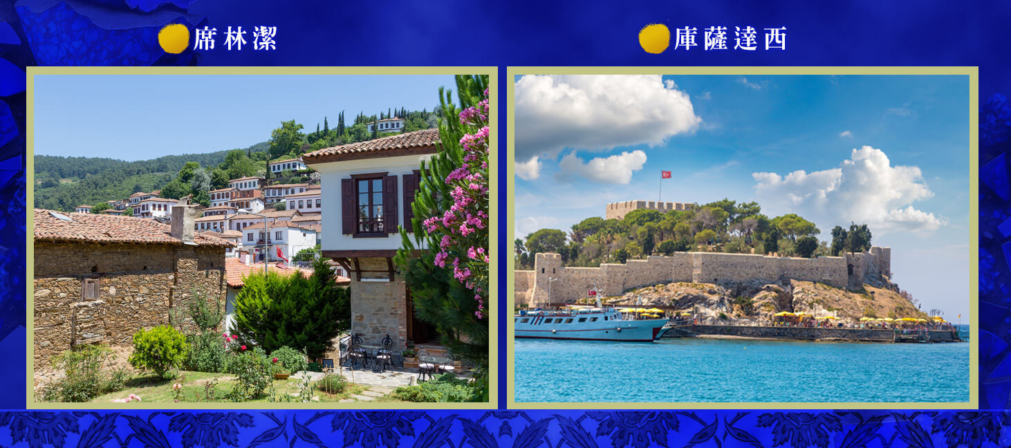 位於土耳其愛琴海岸,是熱門度假與郵輪港口城市。這裡擁有碧藍海水、金色沙灘,陽光燦爛,氣氛悠閒。港邊的鸚鵡島與古老城牆增添風情,而距離不遠的以弗所古城則吸引歷史愛好者前往探訪。市區餐廳、商店林立,融合土耳其傳統與現代氣息。